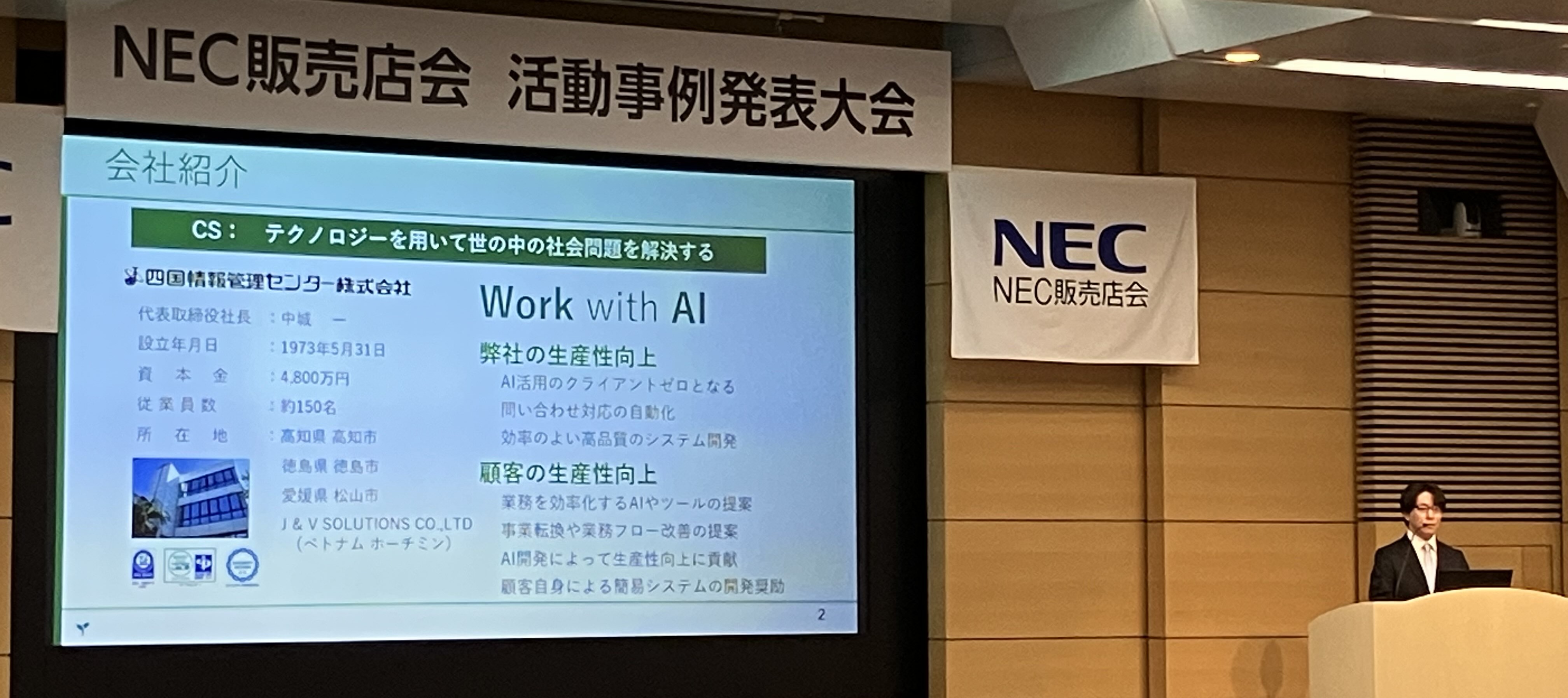 11月19日、東京都港区のNEC東京本社で開催された「活動事例発表大会(全国大会)」に、当社から四国ブロック代表として出場したメンバーが、全国15社の中で見事「優秀賞(全国2位)」を受賞しました。